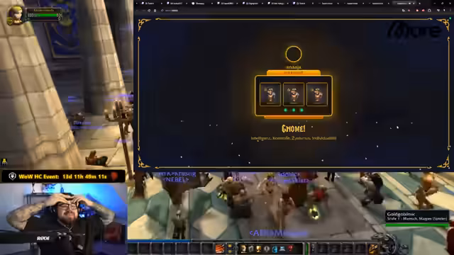 11:47:44Teilnehmer erhalten ihre Quiz-Ergebnisse, die offenbar als Goblin oder Gnome lauten. Es entsteht große Verwirrung und Frustration über die scheinbar zufälligen Ergebnisse. Diskussionen über die Sinnhaftigkeit des Quizes und der Zuweisungen dominieren die Phase. Mehrfach wird betont, dass man lieber andere Völker wie Menschen, Zwerge oder Nachtelfen spielen würde. Die Stimmung ist angespannt, während auf die endgültige Enthüllung gewartet wird.