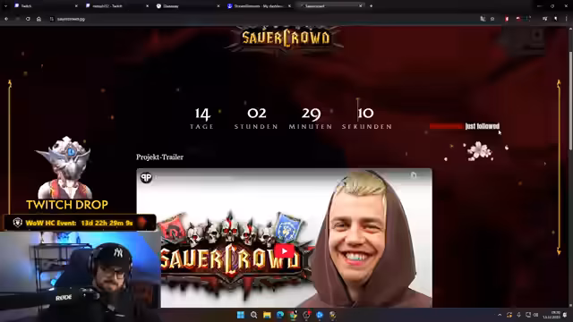 10:34:44Es wird ein Update zum Gilden-Add-On gegeben, das jetzt auch Proximity-Voice integriert. Das Add-On soll Neueinsteigern den Einstieg erleichtern, indem es Interaktionen mit Nicht-Gildenmitgliedern blockiert und Todeszähler in Gildennotizen speichert. Außerdem wird bekannt gegeben, dass es für die ersten fünf Tage nach Spielstart eine eigene Twitch-Kategorie 'Sauerkraut' geben wird, unterstützt von Twitch. Ziel ist es, kleinere Kanäle zu fördern und eine einzigartige Sichtbarkeit zu schaffen.