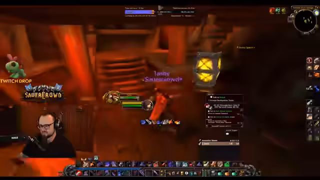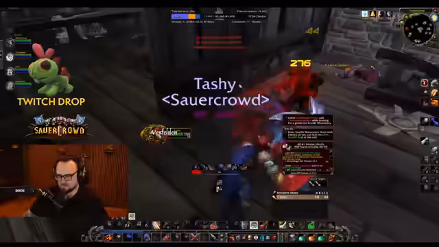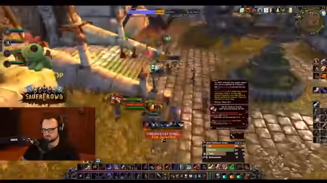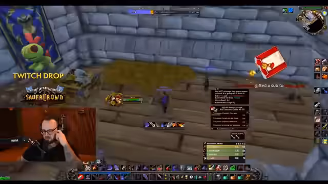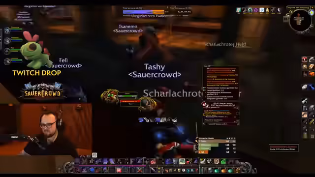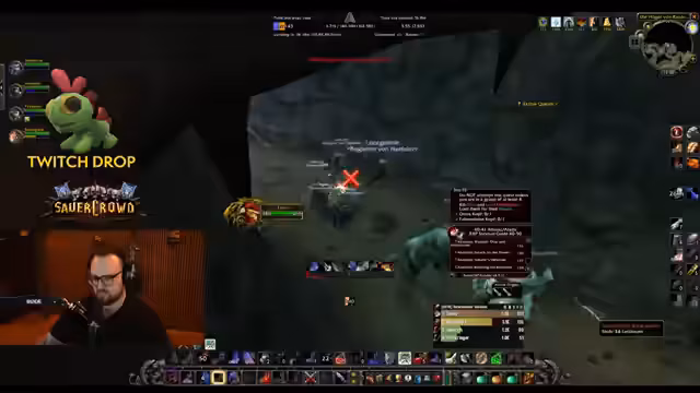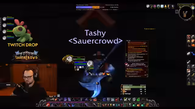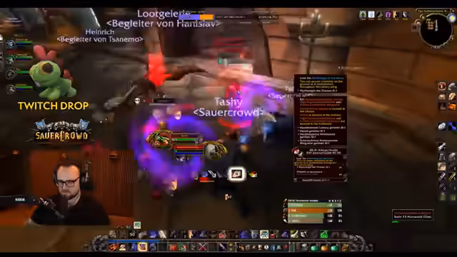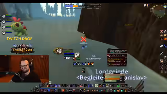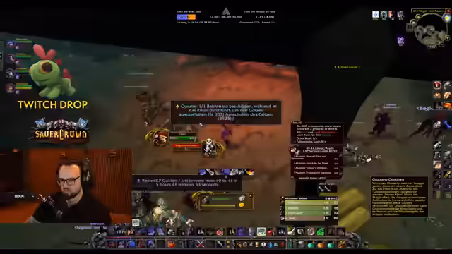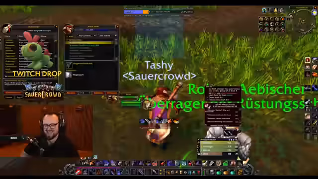 03:31:17Gegen 01:51:17 Uhr gibt es eine Unterbrechung, da ein Mitspieler, Nemo, einen Disconnect erleidet. Während der Wartezeit wird über Quest-Aufgaben gesprochen. Es stellt sich heraus, dass eine spezifische Quest, der 'Hügel von Rettstein', nicht geteilt werden kann und nur ab Stufe 39 in Sturmwind angenommen werden kann. Dies führt zu einer Diskussion über Loot. Ein Spieler, Meloni, möchte einen Kolben, der aber für das Level nicht optimal ist. Der Streamer bestätigt, dass der Kolben mit seinen Stats dennoch eine gute Wahl ist und bietet ihn Meloni direkt an, um den Loot fair zu verteilen.