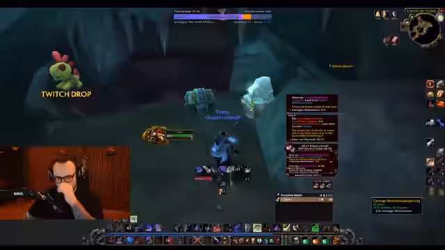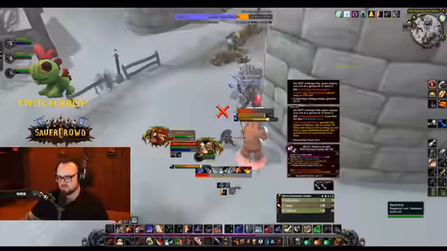 00:33:27Die Gruppe, bestehend aus dem Streamer, Feli, Korn und einigen anderen Spielern, betritt die 'Gänsehautmine', um Quests zu erledigen und loot zu farmen. Der Streamer betont die Notwendigkeit, den Wutresource 'Wirbelwind' effizient zu nutzen, um hohe Schadenszahlen zu erzielen. Man entscheidet sich, die Gegner vorsichtig und in kleinen Gruppen zu pullen, um Überlebenschancen zu maximieren und auf gefährliche Adds wie Frostnova-Caster zu achten.