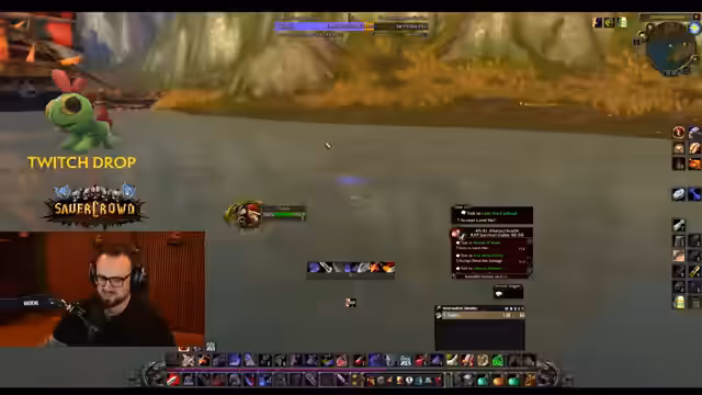 05:54:18Die Gruppe kooperiert, um sich gemeinsam nach Booty Bay porten zu lassen, da sich kein Hexer im Level befindet, der dies direkt kann. Der Streamer plant, dort mehrere Elite-Quests zu erledigen und fragt, welche Gruppenmitglieder an diesen interessiert sind. Es wird die Absicht geäußert, nach den Quests weiter zu grinden, um schnellere Level-Up-Ziele zu erreichen.