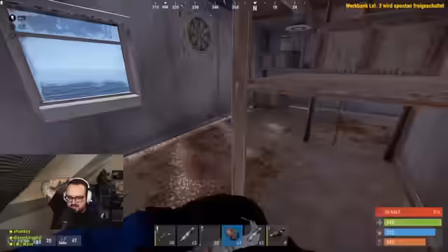09:21:30Es wird überlegt, ob man Fallschaden im Wasser bekommt. Es wird vermutet, dass sich viele Spieler im Casino befinden. Es wird besprochen, dass man Scrap für das Casino benötigt. Kitty fragt, wann es Merch gibt, und der Streamer kündigt April/Mai als Zeitraum an. Es wird überlegt, ob man sich heilen soll. Der Streamer wird beschossen. Es kommen neue Rust-Spieler in den Chat. Es wird erneut nach dem Merch-Termin gefragt. Der Streamer erhält eine Spritze. Es wird überlegt, ob man die Insel verlassen soll. Es wird Stoff und Schnaps gefordert. Es wird Werbung für Merch angekündigt. Es wird überlegt, Ulrichs zu machen und Sachen zu entdecken.