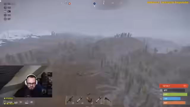 05:32:26Nachdem ein Helikopter erfolgreich gekauft wurde, startet der Streamer einen waghalsigen Flug zur Basis. Nach anfänglichen Schwierigkeiten und einer notdürftigen Landung wird über weitere Pläne mit dem Helikopter gesprochen, darunter das Erkunden der Karte und Durchführung von Luftangriffen. Die Szene unterstreicht das hohe Risiko und die damit verbundenen Gefahren des Spiels.