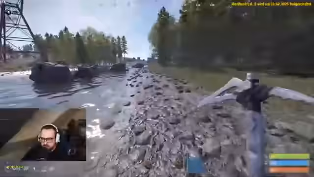 10:06:35Das Team wird von einem Full Squad überrascht und verliert Ausrüstung. Es wird festgestellt, dass die Gegner zwischen der Gruppe und ihrer Basis positioniert sind. Ein Teammitglied kann aufgrund eines Bugs nicht sprinten. Es wird die Vermutung geäußert, dass die Gegner die Basis angreifen könnten. Nach dem Wiederbeleben wird versucht, die verlorene Ausrüstung zurückzugewinnen. Es kommt zu einer erneuten Auseinandersetzung mit den Gegnern, bei der diese als sehr stark eingeschätzt werden. Die Gruppe zieht sich daraufhin zur eigenen Basis zurück, um sich neu auszurüsten und zu sammeln. Es wird die Frage aufgeworfen, wem eine bestimmte Basis gehört und wer diese angreift. Währenddessen werden weitere Spieler gesichtet, was die Situation zusätzlich verkompliziert. Es kommt zu einem Kampf, bei dem ein Spieler einen Headshot kassiert und die Gruppe erneut in Bedrängnis gerät. Trotzdem gelingt es, einige Gegner auszuschalten und wertvolle Ausrüstung zu erbeuten. Die Gruppe beschließt, sich mit dem erbeuteten Loot in Sicherheit zu bringen.