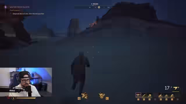 01:13:44Die Hauptaufgabe besteht darin, Blut mit einem improvisierten Blutextraktor zu sammeln und es anschließend in einem Blutreiniger zu verarbeiten. Dies ist ein wesentlicher Schritt im Spiel, um Ressourcen zu gewinnen. Der Streamer betont die Wichtigkeit von Metall und Schrott und erkundet gleichzeitig die Umgebung, um diese Materialien zu finden und die Quest voranzutreiben.