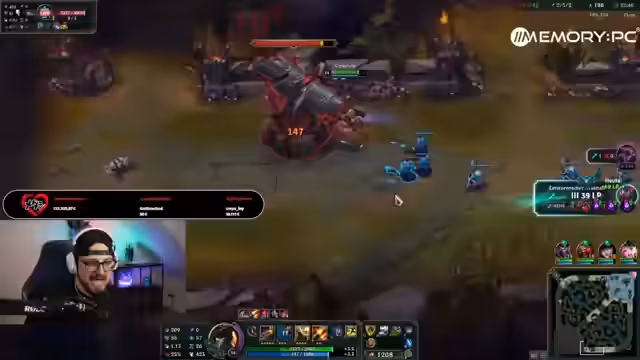 03:00:04Der Streamer bedankt sich bei einem Zuschauer für eine hohe Viewer-Rate und reagiert amüsiert auf einen Kommentar, der dazu auffordert, in einen Roblox-Livestream zu kommen. Er fordert seine Zuschauer auf, einen anderen Streamer zu unterstützen. Er erklärt, dass er nicht einfach so 'face checken' kann, da er keine Mittel hat, um sich zu schützen. Er stellt fest, dass der Drache sicher ist und der gegnerische Echo 'Schienenboots' anstelle eines Heiltranks verwendet, was er als potenziellen Vorteil für sein Team wertet. Er betont die Notwendigkeit, den Gegner in der unteren Lane zu eliminieren, was er mit der Spielweise von Warwick vergleicht. Er äußert sich genervt über das Pingen seiner Mitspieler und mutet die Nami. Er lobt die Spielweise eines Mitspielers, der den Darius 'sleept'.
