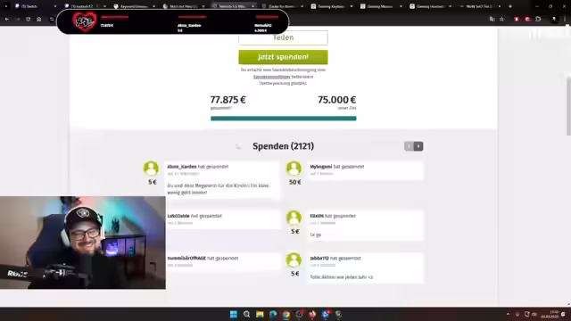 05:07:43Das anfängliche Spendziel wird nicht nur erreicht, sondern um ein Vielfaches übertroffen. Innerhalb kürzester Zeit steigt der Spendenstand von 28.000 Euro auf über 60.000 Euro an. Die Community beweist ihre enorme Kraft und Zusammenhalt. Zahlreiche größere Spenden, darunter ein 1.000-Euro-Betrag und eine Vielzahl kleinerer Summen, führen zu einem überraschenden Spendenrekord, der den ersten Tag der Aktion prägt.