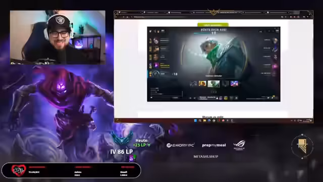 01:17:33Der Streamer kündigt die wichtigsten Sponsoren für den Event an, darunter Turtle Beach, PrepMyMeal und Memory PC, die für Giveaways und Hardware-Verlosungen zur Verfügung stehen. Als erstes Giveaway wird ein 50-Euro-Guthaben ausgelobt, das durch Eingabe eines Keywords im Chat gewonnen werden kann. Neben dem reinen Geldspenden wird das Gameplay in League of Legends direkt für den guten Zweck genutzt: Für jeden Kill, den der Streamer im Spiel macht, spendet er 10 Euro zusätzlich an die Deutsche Krebshilfe. Dieser zusätzliche Spendenanreiz schafft hohe Motivation und Beteiligung im Chat.
