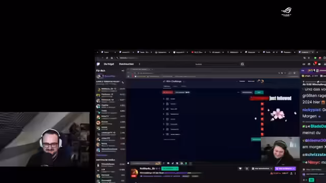 01:01:51Es wird festgestellt, dass Dhalucard bereits live ist und die Frage aufgeworfen, ob No Way ebenfalls live ist. Der Streamer fragt, ob er sich rotzig verhalten kann. Es wird ein Discord-Call gestartet, um die Details der Win-Challenge zu besprechen. Brammen geht kurz, um Kaffee zu holen. Die Teilnehmer sprechen über die Spiele, die sie spielen wollen. Freddy hatte nach der Win-Challenge gefragt. Der Streamer sagt, dass er sehr gerne dabei ist. Die Teilnehmer diskutieren, mit welchen Spielen sie beginnen wollen und einigen sich darauf, mit den anspruchsvollsten Spielen zu beginnen. Brammen äußert Bedenken bezüglich PUBG, da sein Rechner dabei abstürzen könnte. Er hofft, dass Maggie eine Lösung für das Problem hat. Der Streamer äußert seine Abneigung gegen PUBG und schlägt vor, stattdessen Fortnite zu spielen. Die Teilnehmer laden sich gegenseitig zum gemeinsamen Streamen ein. Brammen hat Probleme, der Gruppe beizutreten. Freddy nutzt den Tor-Browser. Es wird über Freddys Rage-Momente in seinen Streams gesprochen und die Freunde äußern ihre Sorge. Die Teilnehmer einigen sich darauf, die Liste der Spiele zu erstellen, sobald Freddy der Gruppe beigetreten ist. Brammen startet PUBG, um es zu testen. Die Teilnehmer entdecken die Funktion für gemeinsame Chats und Viewer.
