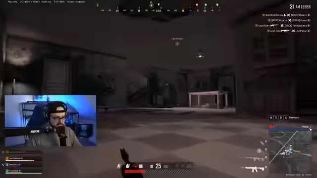 01:25:07Ein Kampf wird verloren, was zu Frustration führt. Die Spieler rätseln über den Grund für die Niederlage, wobei sie auf eigene Fehler hinweisen, wie z.B. eine schlechte Taktik mit der Pumpgun und eine riskante Einstellung in den 'Compound'. Ein Spieler gibt dem anderen die Schuld ('du hast nur rumgequiekt'), während der andere seinen positiven Beitrag betont ('Ich hab den Entry-Frag gemacht, den ersten Knock geholt'). Trotz der Niederlage wird der sechste Platz als akzeptabel angesehen und die Motivation für die nächste Runde ist vorhanden.
