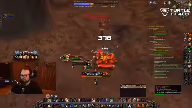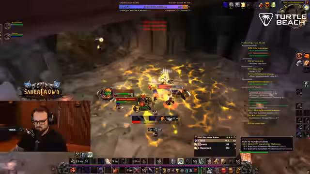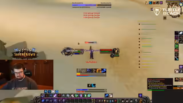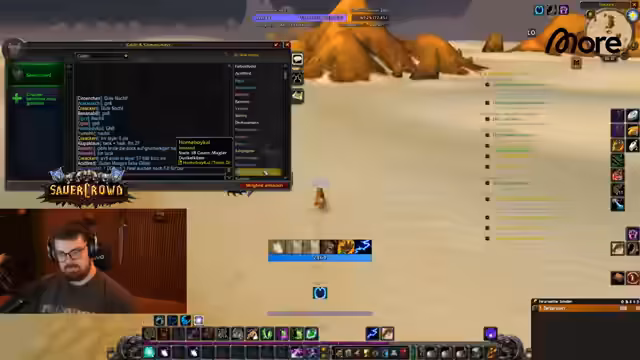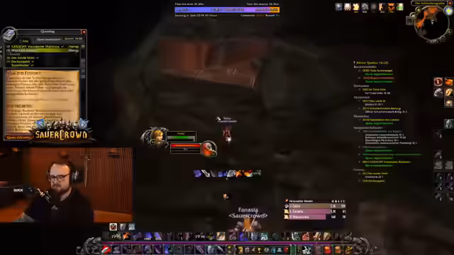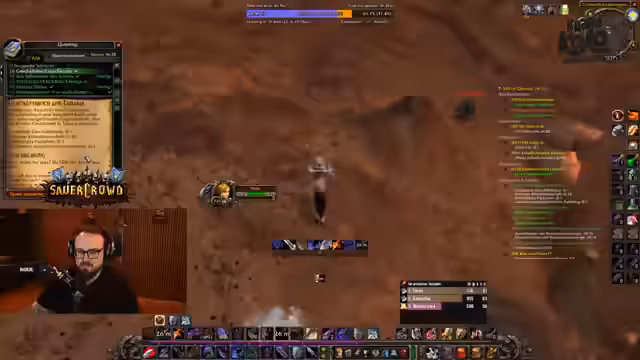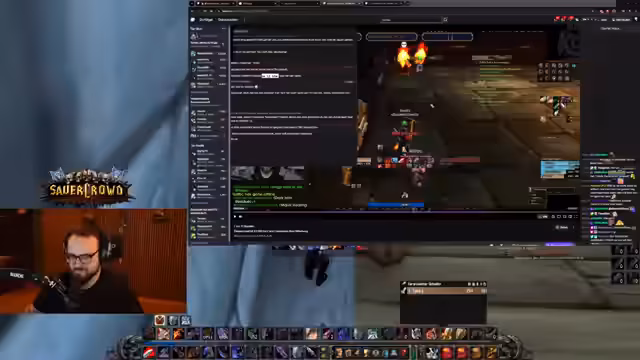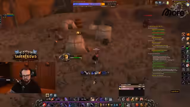 07:38:39Ein anderes Gruppenmitglied offenbarte seine Berufswahl als Alchemist und Kräutersammler, was der Streamer bewunderte, obwohl er den Grund dafür nicht verstand. Währenddessen wurde die Jagd nach einem Rare Mob fortgesetzt, was trotz mehrerer Tötungen keinen nennenswerten Loot brachte und als 'kranke Scheiße' bezeichnet wurde. Der Streamer verteidigte seine Herangehensweise und Ausrüstung gegenüber einem Zuschauer, der kritisierte, dass er durch das leveln seiner Berufe zu langsam sei. Die Gruppe nutzte auch die Gelegenheit, um mit der sauerkraut-Community zu interagieren und Support für verschiedene Anfragen zu leisten, was zu einem Rückstand im Questing führen konnte.