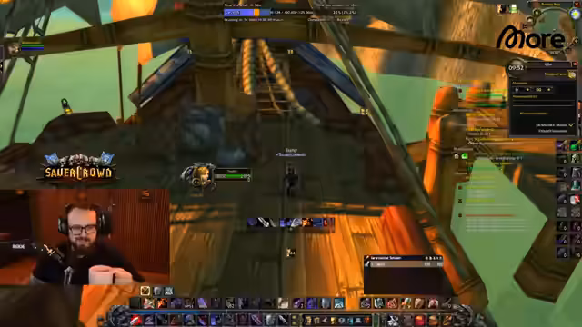 09:30:45Die Gruppe bereitet sich auf einen Endkampf in einer Instanz vor. Der Streamer erwähnt, dass er sich World Buffs aufgespart hat, die er für die letzten Minuten des Events nutzen wird. Es wird die Frage diskutiert, ob der Streamer fliegen kann, ohne seine Gruppe zu benachteiligen, und welche Ausrüstung er dafür nutzen soll. Die Gruppe selbst ist bereits stark aufgestellt, der Streamer ist bereits Level 53, was einen reibungslosen Ablauf der Instanz erwarten lässt. Der Ton ist geprägt von Vorfreude und der finalen Organisation vor dem Start.