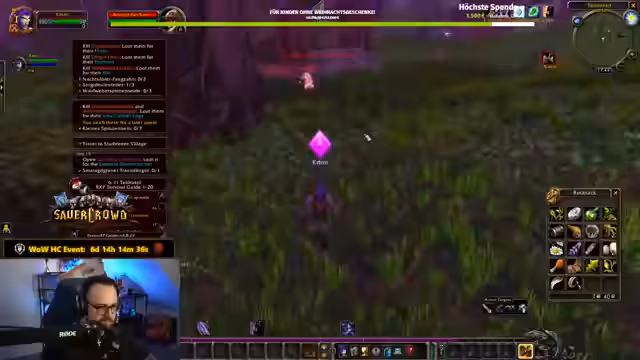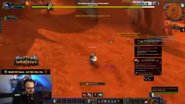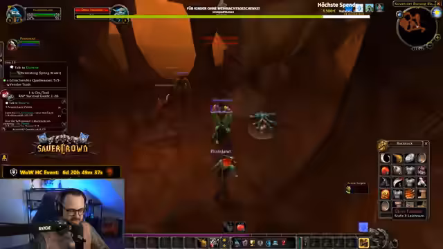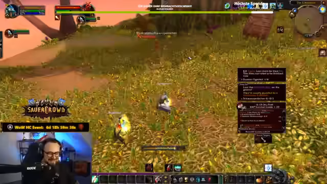 01:41:56Der Streamer und sein Mitspieler Rumi erleben während des gemeinsamen Grinds in World of Warcraft mehrere Tote und schwierige Situationen. Es kommt zu Missverständnissen, wie als Rummy versehentlich den falschen Zielen heilt, und zu humorvollen Kommentaren über die unfairen Mobs. Die beiden, insbesondere der Streamer, verlieren ihre Charaktere mehrmals, was zu witzigen Reaktionen wie 'Ronny, du bist komplett in ihm drin' oder 'Ronnys erster Tod' führt. Der Fokus liegt auf der Kommunikation und dem meistern der Herausforderungen.