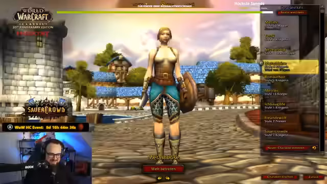 02:03:46Für das Charity-Event wird eine anspruchsvolle Challenge für World of Warcraft Classic angekündigt. Der Streamer und sein Partner Romatra planen, neue Charaktere zu erstellen und diese auf Level 11 zu leveln, um anschließend den Endboss der Ragefire-Challenge zu besiegen. Die Besonderheit ist, dass die Charaktere nur 'Selfound' sein dürfen, also keine externen Gegenstände oder Hilfe erhalten dürfen. Alle Zuschauer werden ermutigt, sich mit eigenen Level-11-Charakteren an der Challenge zu beteiligen.