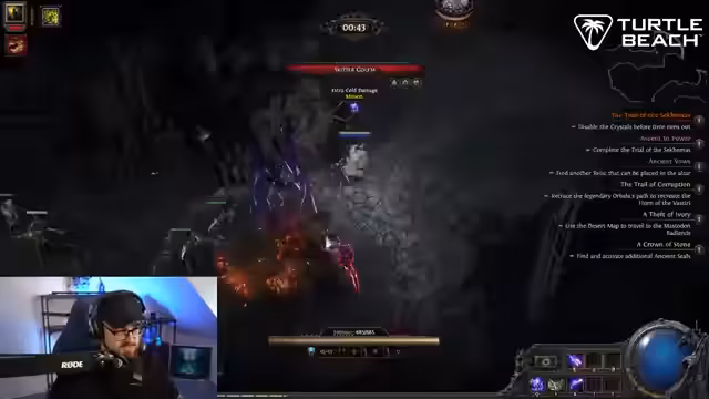 04:47:01Der Streamer befindet sich in einem intensiven Kampf gegen Elite-Mobs und Bossgegner, wobei er besonderen Wert auf Bewegung und Vermeid von Schaden legt. Er diskutiert seine Fähigkeiten und Ausrüstung, insbesondere einen Schild, den er als legendär bezeichnet, aber nicht nutzen kann. Dies führt zu einer allgemeinen Frustration über Loot und die Spielmechanik, da er Items mit wenig Nutzen für seine Build-Strategie erhält. Gleichzeitig erkundet er verschiedene Fähigkeiten wie Essence Drain und Chain, die er anpassen und verbessern möchte.