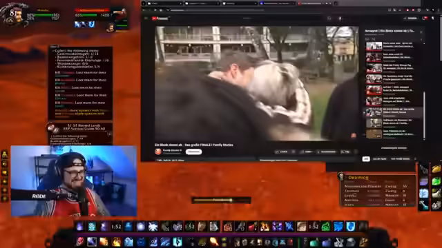 01:51:21Die Unterhaltung wechselt zu völlig unzusammenhängenden, nostalgischen Themen. Es wird über die besten Frühstücksflocken, YumYum-Chips und wilde Mutproben wie das Ziehen von Ahoi-Brause durch die Nase gesprochen. Der Streamer erzählt eine sehr persönliche und detaillierte Anekdote aus seiner Kindheit über die Jagd auf Yu-Gi-Oh! Götterkarten, die er teils unlauter erworben hat. Nach einer kurzen Pause wegen einer Notfallsituation ('SOS') kehrt er zum Gameplay zurück und beginnt verzweifelt eine Quest zu einer Figur namens 'Tuga' oder 'Tolga' im Spiel World of Warcraft, die aber nicht auffindbar zu sein scheint.