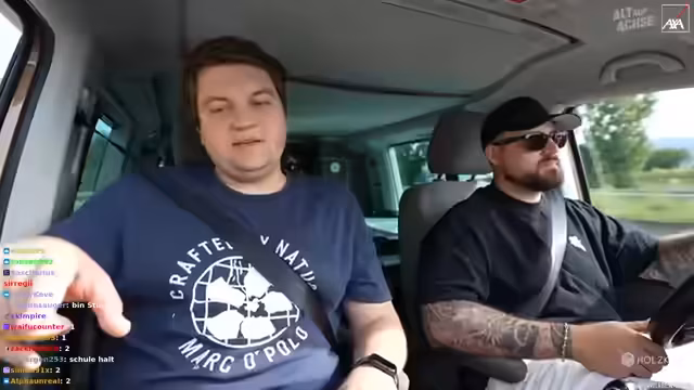 00:06:51Der Streamer kündigt an, dass sein eigener Merch-Shop um 13 Uhr live geht. Er trägt den Merch bereits und lobt die Qualität. Später soll noch mehr darüber gesprochen werden. Während der Fahrt gibt es technische Probleme mit dem gemeinsamen Chat. Es gibt Diskussionen über Ralf Schumacher und dessen öffentliches Outing. Der Streamer betont, dass der Chat ein Safe Space ist und die Zuschauer mitgenommen werden sollen, um Content für später zu haben. Es wird über bevorstehende italienische Erlebnisse gesprochen, wie Essen, Trinken und eine Bootsfahrt auf dem See, sowie den besonderen Kaffee in Italien.