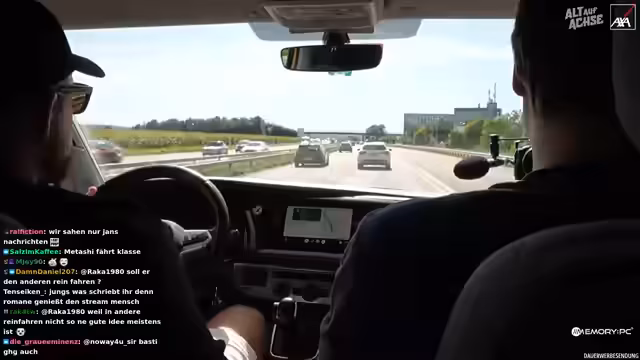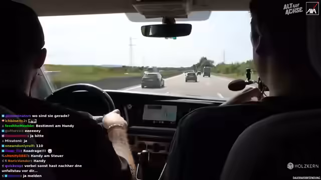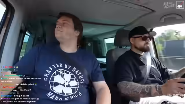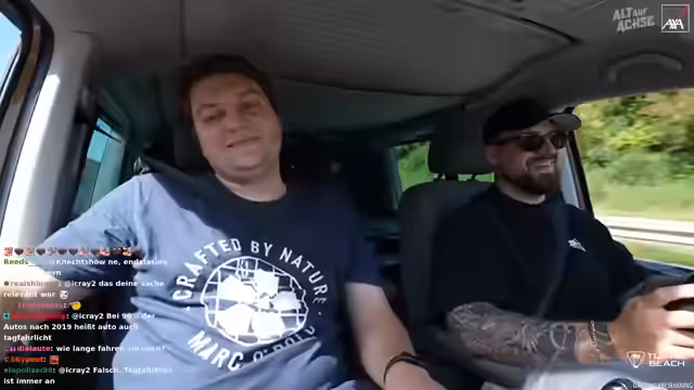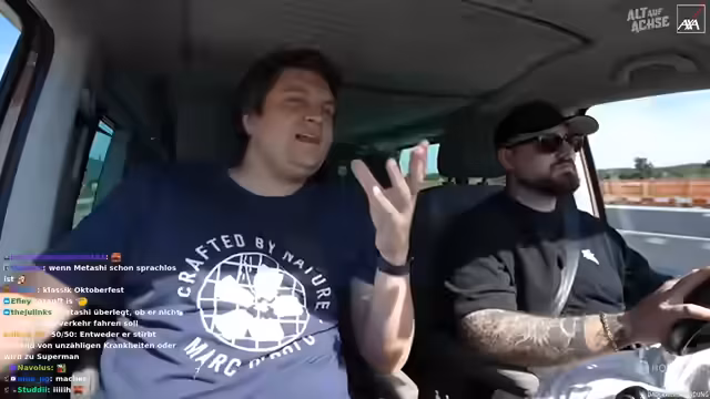 02:12:50Es wird über Emotionen und den Stellenwert von Autos gesprochen. Ein Teilnehmer fühlt sich in seinem Auto einfach gut. Es wird über Zwipsalver auf einer Brücke gesprochen, die gewunken haben. Ein Teilnehmer hat sich noch nie so berühmt gefühlt wie auf dieser Tour. In Heidelberg lief er wie Dietra Bohlen herum. Es wird über alte Opas gesprochen, die in Thai-Urlaub fahren. Es wird überlegt, ob man immer eine andere Geschichte erzählen soll, wenn man von Fremden angesprochen wird. Ein Teilnehmer will einmal als Tatort-Scout auftreten. Ein gefährlicher Fahrer wird beobachtet, der auf zwei Spuren fährt. Es wird überlegt, ob man die Polizei rufen soll. Die mahnende Hand soll erhoben werden, um auf den Fahrverkehr hinzuweisen. Es wird beobachtet, wie der Fahrer die Hand bei seiner Beifahrerin hat. Es wird vermutet, dass es sich um ein Titanic-Boot handelt. Nach dem blauen Schild soll der Mini überholt werden. Die linke Spur wird mit 142 befahren. Es wird Angst vor einem Arschloch-Manöver geäußert. Es wird beobachtet, dass der Fahrer am Handy tippt, mit einer Hand am Lenker und Kindern im Rücksitz. Es wird überlegt, ob man die Polizei rufen soll. Die Gruppe wird von links überholt. Es wird ein Kuhnjörn beobachtet. Der Fahrer stellt sich wieder vor die Gruppe. Es wird über ein Testament gesprochen und wer den WoW-Account bekommt. Der WoW-Account ist seit 20 Jahren aktiv und hat viele seltene Mounts. Es wird überlegt, wie man Frederik nach Azeroth bekommt. Es wird ein sojanischer Tiger für Frederik gesucht. Die Kosten für 10 Millionen Gold werden diskutiert.