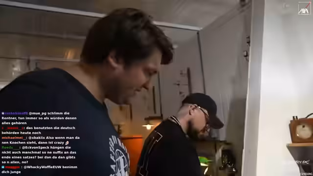 10:12:57Es wird über persönliche Hygiene und ungewöhnliche Gewohnheiten diskutiert, insbesondere im Zusammenhang mit dem Stuhlgang. Ein Teilnehmer beschreibt sein Ritual, nach dem Toilettengang zu duschen, was auf allgemeines Unverständnis stößt. Die Runde diskutiert darüber, ob dies normal ist und welche Alternativen es gibt. Der Streamer erzählt von einem BIOS-Update, das zu einer stressbedingten "Kackattacke" führte. Es wird über die Schwierigkeit gesprochen, sich nach dem Stuhlgang sauber zu fühlen, selbst mit Feuchttüchern. Die Diskussion schweift ab zu einem Asia-Big-Buba-Game und einem BIOS-Update. Die Gesprächspartner kommen auf das Thema Prostata-Untersuchung zu sprechen. Es wird beschlossen, für Jan eine Frau aus dem Chat zu suchen. Es folgt eine humorvolle Dating-Show-Einlage, in der Jans Vorlieben und Abneigungen diskutiert werden.
