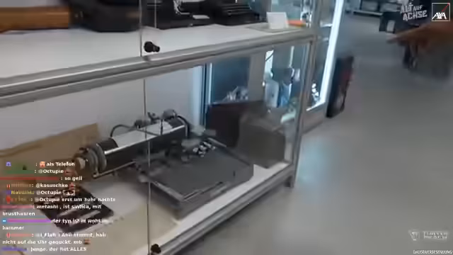 05:08:37Es wird versucht, das interne WLAN des Museums zu nutzen, um wieder live zu gehen. Die Aufregung ist groß, aber der Empfang ist weiterhin schlecht. Es gibt zwei Router: einen für das Internet und einen für etwas anderes. Der Name des Streamers soll in einem Gerät angezeigt werden. Ein Mitarbeiter des Museums gibt an, dass das WLAN weiter hinten besser sei. Es wird versucht, sich daran zu halten, um live zu bleiben. Freddy soll einige interessante Exponate zeigen. Der Mitarbeiter schlägt vor, dass er mit dem Rucksack beim Repeater wartet. Metashi hat jetzt Internet und kann den Chat sehen. Die Gruppe befindet sich nun in der Technikwelt. Der Name des Streamers wird auf einem alten Computer auf einer Tonspur geschrieben und abgerissen. Der Mitarbeiter möchte, dass die Gruppe nach Zeit anfängt und sich die Exponate ansieht. Es wird gefragt, wie weit man mit dem Internet gehen kann. Es wird empfohlen, in der Nähe des Rucksacks zu bleiben, um das Signal nicht zu verlieren.