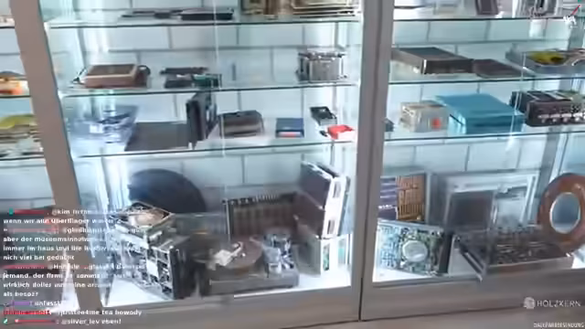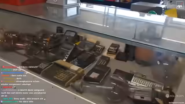 07:09:47Die Gruppe besucht den Shop, wo sie von einem Zuschauer aus Zürich begrüßt wird, der sich als Schachspieler entpuppt, gegen den der Streamer vor zwei Jahren gespielt hat. Der Zuschauer wollte sich für sein Verhalten entschuldigen. Der Shop wird erkundet, der voller Material, Ersatzteile, Radios, Computer und Dosen ist. Die Gruppe überlegt, etwas mitzunehmen und schaut sich die Preise an. Die Leute fragen nach dem Museumsbesuch, ob man auch etwas kaufen kann. Der Shop bietet eine große Auswahl an Artikeln, darunter Telefone und Projektoren. Alte Kassetten und Spiele werden entdeckt, darunter ein Computerspiel von 1986. Der Streamer überlegt, etwas mitzunehmen oder eine Schallplatte für jemanden zu kaufen. Ein original verpackter Sony Walkman wird entdeckt. Der Besitzer kennt sich mit jedem Teil aus und weiß, wo es war und was es ist.