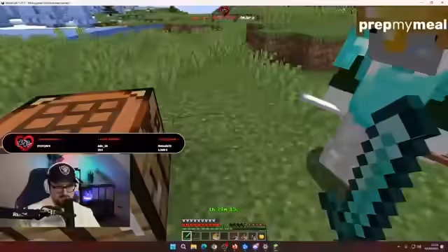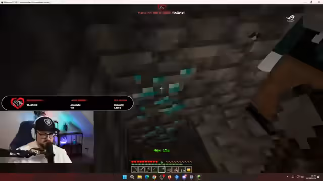 04:13:32Einer der Spieler farmt Holz und soll es erstmal behalten. Er soll aufpassen, da gefährliche Monster in der Nähe sein könnten. Ein Pillager greift an. Einer der Streamer schlägt den anderen, damit er wach ist. Es wird befürchtet, dass es der letzte März mit Herz sein könnte. Einer der Spieler hat einen Pfeil im Kopf. Er wird getötet. Es wird eine Ofenstation gebaut. Gold und Eisen werden hineingepackt. Einer der Spieler zeigt die Wertsachen: 27 Diamanten. Es soll Rüstung hergestellt werden. Es werden zwei Diamantschwerter hergestellt. Einer der Streamer braucht ein Schwert und ist wieder auf den anderen angewiesen. Es wird betont, dass sie ein Team sind.
