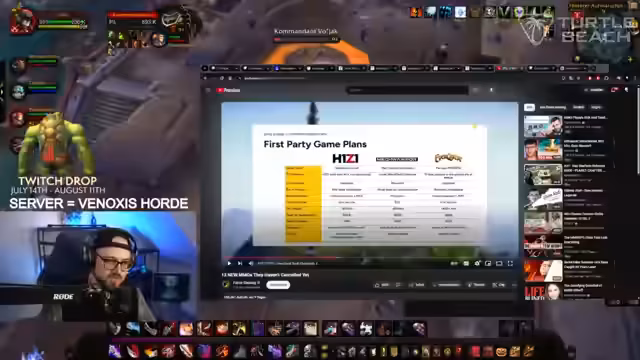 09:56:39Der Streamer erwähnt verschiedene WoW-Erweiterungen wie Burning Crusade, WOTLK und jetzt MOP. Er plant, beim Zeus WoW-Event teilzunehmen, um Level 60 zu erreichen und spricht über seine Erfahrungen mit WoW-HC (Hardcore), wo er zwar viel gespielt hat, aber nie Max-Level erreicht hat. Er erwähnt auch einen Deal mit Phanasia, um 2025 Level 60 in HC zu schaffen und reagiert auf falsche Event-Ankündigungen für den nächsten Tag.