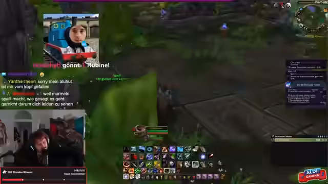 10:04:19Er spricht über WoW-Erfahrungen seit 2018 und verschiedene Erweiterungen. Er erwähnt, dass viele Zuschauer bereits Level 90 erreicht haben, während er selbst nur Level 44 war. Er empfiehlt das Addon Bartender 4 zur Anpassung des Interface und erwähnt sein Ziel, Elden Ring durchzubeaten. Er deutet auch an, dass er sich Tipps von jemandem holen könnte, der spielt wie ein Fadenkreuz in der Mitte des Bildschirms.