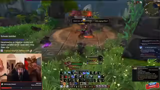 12:24:05Der Streamer spricht über seine Musikvorlieben und erwähnt, dass er Nickelback überspringt, weil viele Zuschauer es mögen. Zudem wird über das Firmenfest und den Alkoholkonsum gesprochen. Ein Zuschauer fragt nach dem schnellsten Weg, um auf Level 43 zu kommen, und es wird zwischen Questen und Grinden diskutiert. Auch die Teilnahme an Events und die Freude an der Gemeinschaft werden betont, wobei die Streamer ihre Dankbarkeit gegenüber der Community ausdrücken.