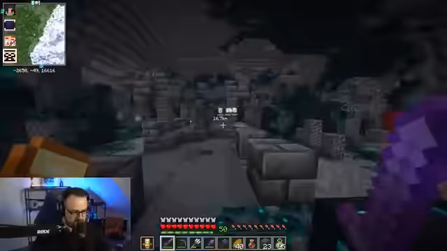 02:14:18Die Spieler erkunden eine gruselige Ancient City, die an Stargate erinnert. Sie sind nervös, aber auch gespannt auf mögliche Diamanten und andere Beute. Metashi wird als 'Trüffelschwein' vorangeschickt, da er angeblich Glück beim Finden hat. Sie bewegen sich vorsichtig, um keine Geräusche zu machen, die den Warden anlocken könnten. Trotz der anfänglichen Schwierigkeiten und der Warnung des Chats, zu tief zu sein, finden sie erste Diamanten und Eisen, was als gutes Zeichen gewertet wird. Die Suche nach der Hauptstruktur der Ancient City geht weiter, während die Spieler die unheimliche Atmosphäre und die Geräusche der Umgebung wahrnehmen.