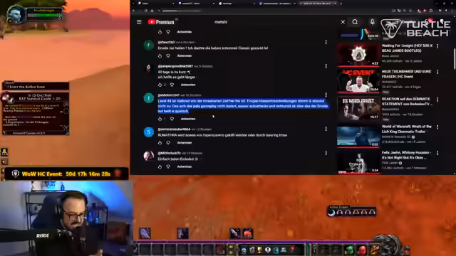07:00:46Es gab eine Auseinandersetzung mit dem Streamer Trilltroll bezüglich seiner Teilnahme am Event. Trilltroll hatte wiederholt seine Teilnahmebereitschaft auf verschiedenen Plattformen bekundet und sich über eine fehlende Einladung beschwert. Der Streamer stellte klar, dass die Auswahl der WoW-Streamer bewusst zurückhaltend erfolgt, um eine Überrepräsentation erfahrener Spieler zu vermeiden, und dass noch nicht alle Einladungen verschickt wurden. Er äußerte Unverständnis über Trilltrolls wiederholte Anfragen und dessen emotionale Reaktion im Stream, nachdem er auf die vielen Nachrichten hingewiesen hatte. Der Streamer distanzierte sich von der Annahme einer engen Freundschaft mit Trilltroll und lehnte ein privates Gespräch ab, da er die Thematik als unnötiges Drama empfand. Er betonte, dass solches Verhalten eher zu einer Ablehnung zukünftiger Anfragen führen würde. Zudem wurden kritische Kommentare aus der Community bezüglich des Regelwerks und der Klassenauswahl im WoW Hardcore Event diskutiert, wobei der Streamer seine Entscheidungen verteidigte.