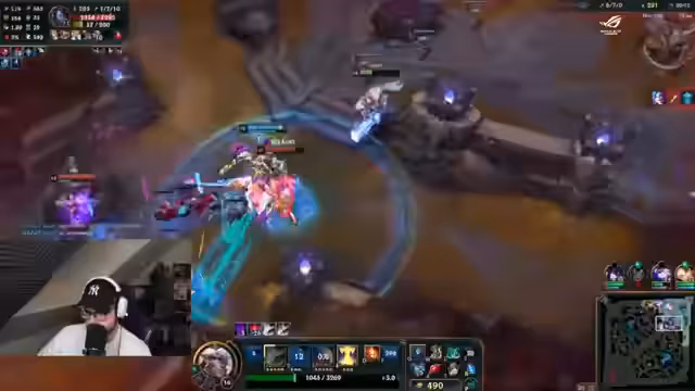 05:13:39Nach einer späten Teamfight-Niederlage wird über den weiteren Item-Build für Kassadin diskutiert. Der Streamer ist unzufrieden, da er den Gegner nicht töten kann, weil dieser zu tanky ist. Er entscheidet sich für einen Build aus Rocket Belt und Rabadon's Deathcap, um mehr Schaden zu erhalten, und ignoriert den Gegner vorerst, um stattdessen Turrets zu pushen und Druck auf der Map auszuüben.