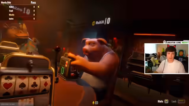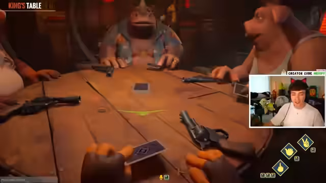 01:57:14Da Fortnite nicht mehr möglich ist, wechseln die Teilnehmer zu anderen Spielen. Sie spielen eine Runde Liar's Slot, ein Spiel basierend auf dem Bluffen mit Herzsymbolen. Anschließend folgt eine Runde King's Table, ein Kartenspiel, bei dem das Lügen der Kern des Spiels ist. Der Fokus liegt auf dem spielerischen Bluffen, Vertrauen und dem Ausrufen von Lügen.