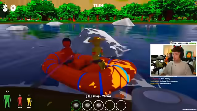 03:48:03Das Boot wird durch die Strömung gedreht und die Gruppe muss nun durch Klicken die Lenkung meistern. Die Kommunikation ist holprig und die Steuerung schwierig, was zu häufigen Kollisionen und Wassereinbrüchen führt. Die Spieler kämpfen, um das Boot über Wasser zu halten, während sie versuchen, Items im Wasser zu sammeln und gleichzeitig die Leichen der Kameraden einzuholen. Die Stimmung ist angespannt, aber auch voller humorvoller Ausrufe.