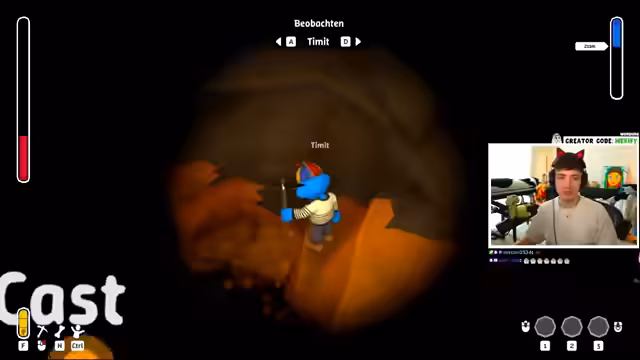 01:49:10Die Spieler arbeiten intensiv zusammen, um im Spiel 'Deep Town' tiefer in die Erde vorzudringen und dabei sich gegenseitig zu retten, wenn jemand in eine Grube fällt. Die Stimmung ist hochspannend, da sie sich in großen Höhen bewegen und ständig die Gefahr eines tödlichen Sturzes besteht. Der Streamer erhält ein 'Extra-Leben', was die Aufregung steigert. Sie haben das Ziel, 600 Meter tief zu gehen, was als eine Herausforderung für die gesamte Gemeinschaft beschrieben wird.