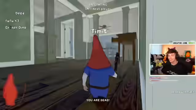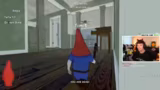 01:00:41Im Spiel 'Burgling Gnomes' ergeben sich besondere Herausforderungen. Die Spieler müssen Quests erfüllen, wie das Töten einer Kakerlake, was durch unübersichtliche Level-Designs erschwert wird. Charaktere stecken fest, fallen von Gegenständen oder finden sich in Kühlschränken wieder. Die Kommunikation ist angespannt, da jeder versucht, gleichzeitig zu überleben, die Quest zu erfüllen und sich vor dem Bewohner zu verstecken.