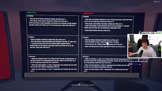01:36:25Während der Versuche, die anhaltenden technischen Probleme des virtuellen Flugzeugs zu beheben, wächst die Frustration der beiden Spieler stetig an. Sie müssen sich ständig wieder neue Zahlen und Anweisungen merken, was als überfordernd empfunden wird. Das System fühlt sich unintuitiv an und die teils verwirrenden Handbücher tragen nicht zur Entlastung bei. Die Spieler kommen zu dem Schluss, dass sie an ihre Grenzen gestoßen sind und das Spiel als extrem stressig und unzureichend konzipiert empfinden.