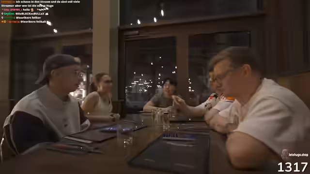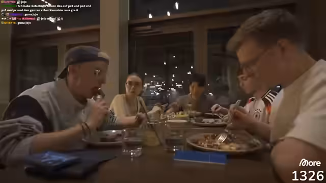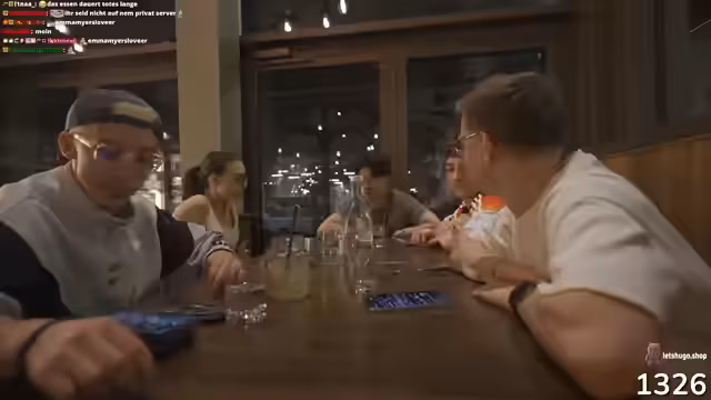 03:04:49Der Streamer und seine Begleiter sind in einem Restaurant und interagieren intensiv mit dem Chat, um Bestellungen aufzugeben. Es werden verschiedene Menüoptionen wie Steaks, Burata und Chicken Pasta diskutiert. Der Streamer äußert spezielle Wünsche, wie zum Beispiel ein Tomahawk-Steak, und erkundigt sich bei den Zuschauern nach deren Vorlieben für Beilagen wie Oliven oder Kräuterbutter. Der Bestellvorgang gestaltet sich teilweise schwierig, da bestimmte Gerichte nicht verfügbar sind und Abstimmungen im Chat erforderlich sind.
