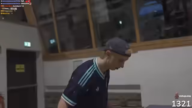 01:42:27Nach den körperlich fordernden Parcours-Einheiten wechselt der Stream zu einem Tischtennis-Spiel. Vor dem Spiel wird eine Verlosung für zweimal zwei Tickets für ein Red Bull Event angekündigt. Während des Spiels entwickelt sich ein freundschaftliches, aber auch wettbewerbsorientiertes Duell zwischen den Teilnehmern. Der Chat wird aktiv in den Wettkampf eingebunden, indem z.B. gefragt wird, wer im Verein am besten Tennis gespielt hat. Das Spiel endet mit einem Sieg für Heiko.