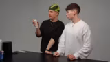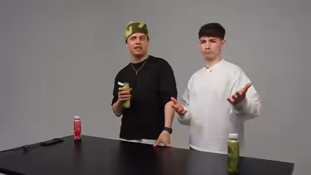 00:32:57Der Streamer testet Matcha-Getränke der Marke Nona. Zuerst wird "Skin Dream" mit Erdbeer-Hibiscus Geschmack getestet. Beide Tester empfinden den Geruch extrem negativ, der Streamer vergleicht ihn mit "Kotze" und "Babybrei". Der Geschmack wird als "abscheulich", "ekelhaft" und wie abgelaufene Müllermilch beschrieben, eine Note von 1/10 wird vergeben. Der "Strawberry Matcha" und der normale "Matcha Drink" werden besser aufgenommen, schmecken aber ebenfalls nicht intensiv nach Matcha und eher nach Hafermilch. Der "Strawberry Matcha" erhält eine Note von 2/10. Die Tester führen die negiven Bewertungen auf die hohen, nicht erfüllten Erwartungen durch das Produkt-Branding und den hohen Zuckergehalt zurück.