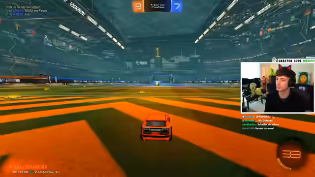 01:03:10Nach mehreren Fortnite-Spielen wechselt der Streamer das Spiel zu Rocket League. Dort plant er einen Solo-Grind, da er in dieser Spielweise noch relativ unerfahren ist. Vorher teilt er sich kurz mit Kato in einem normalen Battle-Royal-Spiel, doch der Fokus schnell wieder auf Solo-Spielen und die Steigerung der persönlichen Leistung. Der Streamer hat Angst, weil er in Solo-Rocket League kacke ist, und überlegt, zu welcher Zeit er einsteigt, um mehr Gegner zu finden.