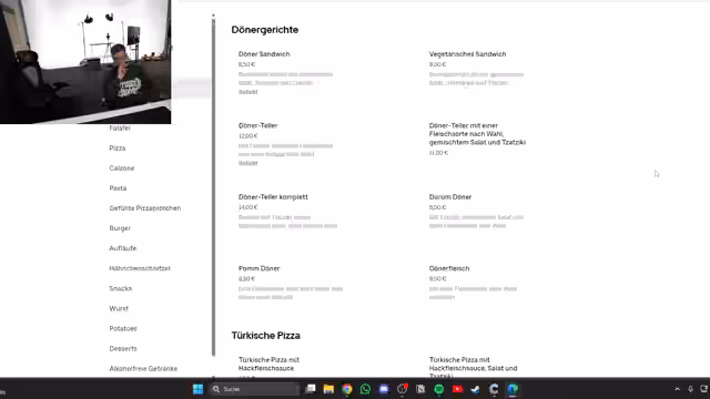 00:21:30Die Streamer starten mit der Suche auf Lieferando und Uber Eats nach Restaurants ohne Bewertungen. Nachdem sie einige überbewertete oder bereits existierende Läden aussortiert haben, finden sie eine Handvoll potenzieller Läden. Sie entscheiden sich für asiatische Küche bei Teriyaki Fusion und planen neben den Hauptgerichten auch Desserts wie Parfait und Windbeutel mitzubestellen. Auch das Bestellen von Besteck wird als wichtig erachtet, da Lieferanten dies oft vergessen und dies in negativen Bewertungen thematisiert wird.