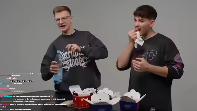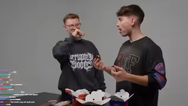 00:04:21Das Hauptkonzept des Streams wird vorgestellt: das Bestellen und Testen von Restaurants, die noch keine oder sehr wenige Bewertungen auf Lieferdiensten haben. Streamer planen, als erste Bewertung eine ehrliche und eventuell negative Kritik zu hinterlassen. Dabei werden persönliche Anekdoten über unangenehme Essenserfahrungen geteilt, wie das Auffinden von Federn oder Metallstücken im Essen. Auch die Themen Rechtschreibung und schulische Schwächen werden humorvoll aufgegriffen.