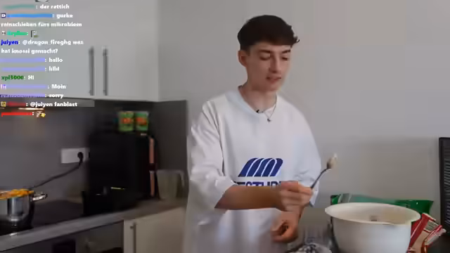 00:00:00Nach einer kurzen Phase technischer Anlaufschwierigkeiten beginnt der Stream offiziell. Die Streamer begrüßen ihr Publikum und kündigen an, vier virale TikTok-Rezepte mit ihrer Gastin Phoebe nachzubereiten. Im Fokus steht der Trend mit Pringles und Schokolade, der im Vordergrund des ersten Versuchs steht. Man beschließt, mit dem süßen Rezept zu beginnen, da einige Zutaten Kühlschrankzeit benötigen. Das erste Rezept, eine Kreation aus Pringles, Schokolade und Marshmallows, soll im Wasserbad zubereitet werden.