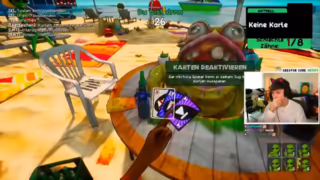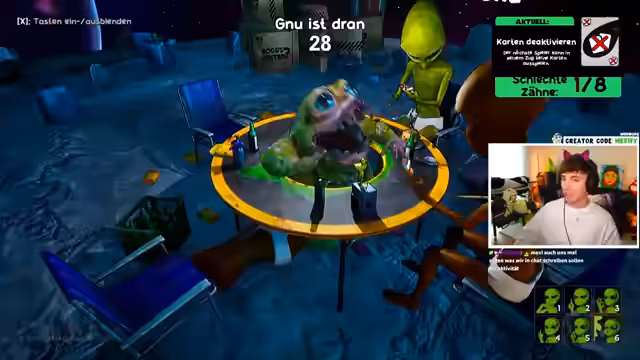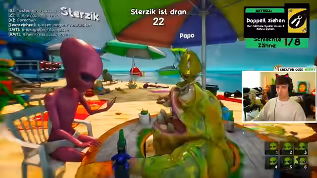 01:12:18Zu Beginn der Runde konzentriert sich das Gameplay auf das Spiel 'Make It Meme'. Es werden mehrere misslungene Ziehungen von Zähnen beklagt, die zu blutigen und unangenehmen Konsequenzen führen. Spieler verlieren Gliedmaßen und erleiden entzündete Wunden, was die Spannung und den unvorhersehbaren Charakter des Spiels unterstreicht. Kommentare wie 'Ich hab beide gleich tatsächlich abgespuckt' und 'das war keine Spucke bei mir' zeugen von der chaotischen und humorvollen Stimmung des Streams.