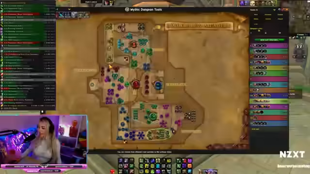 00:09:54Der Stream beginnt mit Begrüßungen der Community. Der Fokus liegt auf dem Einstieg in den Zinderbrew-Dungeon mit einer Mili-Comp. Hierbei wird über die Komposition und eine mögliche Route diskutiert, die jedoch noch auf Feedback der Mitspieler wartet. Der Streamer äußert seine Zufriedenheit mit der generellen Comp, während er versucht, sich auf den ersten Pull vorzubereiten und sich durch verschiedene Mechanismen wie Chains orientiert. Es besteht ein leichtes Unbehagen bezüglich des Builds und des Routings.