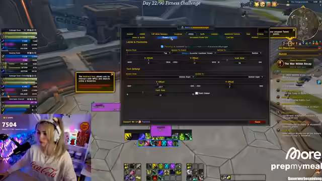 01:23:20Zu Beginn wird die tägliche Schrittziele-Tracker-Funktion besprochen, die durch Stream-Aktivität erreicht werden kann. Der Fokus liegt dann auf der Konfiguration von Addons. Ein Problem ist, dass das aktuelle Lieblings-Interface (RQI) nicht einfach zwischen den Charakteren geteilt werden kann. Dies zwingt zur Recherche nach Alternativen, um ein für alle Klassen leicht importierbares Interface zu schaffen. Die Suche nach einem Tracking-Addon für Weak Auras und die Schwierigkeiten, ein funktionierendes Addon wie BCDM (Better Cooldown Manager) zu implementieren, stehen im Mittelpunkt.