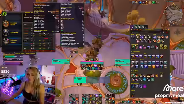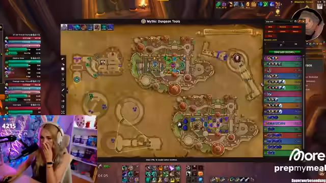 05:32:29Die Streamerin widmet sich der Planung der Route für den nächsten Dungeon-Push. Sie diskutiert die Strategie, bestimmte Mobs und Bosse zu priorisieren, um den Timer zu treffen. Dabei wird auch die Kommunikation in der Gruppe wichtig, etwa wer welche Mobs pullt. Sie plant, für den Push bestimmte Klassen wie Evoker oder Warlock einzusetzen und sucht nach der optimalen Zusammensetzung.