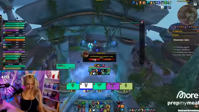 Es wurde ein ambitionierter Versuch unternommen, den Keystone-Dungeon Windrunner 17 unter Zeitdruck zu absolvieren. Nachdem anfängliche Strategien mit einem Monk-Tank scheiterten, wurde die Rolle spontan geändert. Als Schadensdealer konnte die Gruppe den Erfolg letztlich knapp erzielen.