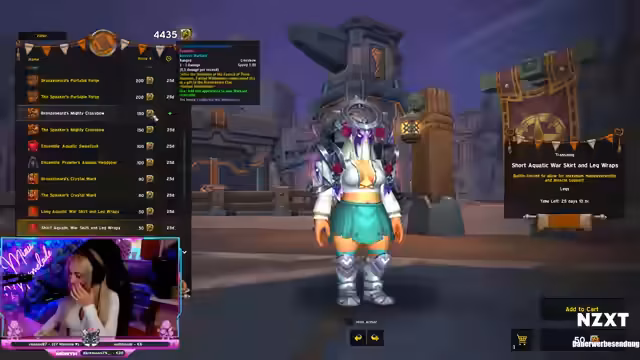 00:56:06Nach einer kurzen Pause und der Anpassung der Route startet der zweite Versuch. Die Gruppe meistert die kritischen Pulls, insbesondere den gefährlichen Miniboss mit den Eiern, dank besserer Koordination und abgestimmter Fähigkeiten. Der Dungeon wird erfolgreich im Zeitlimit geschafft. Nach dem erfolgreichen Run gibt es eine Diskussion über den获得的 Loot und das aktuell getragene Transmog. Die Streamerin zeigt verschiedene Outfits und spricht über ihre Vorliebe für spezielle Sets, die oft Anspielungen auf Popkultur oder andere Spiele enthalten.
